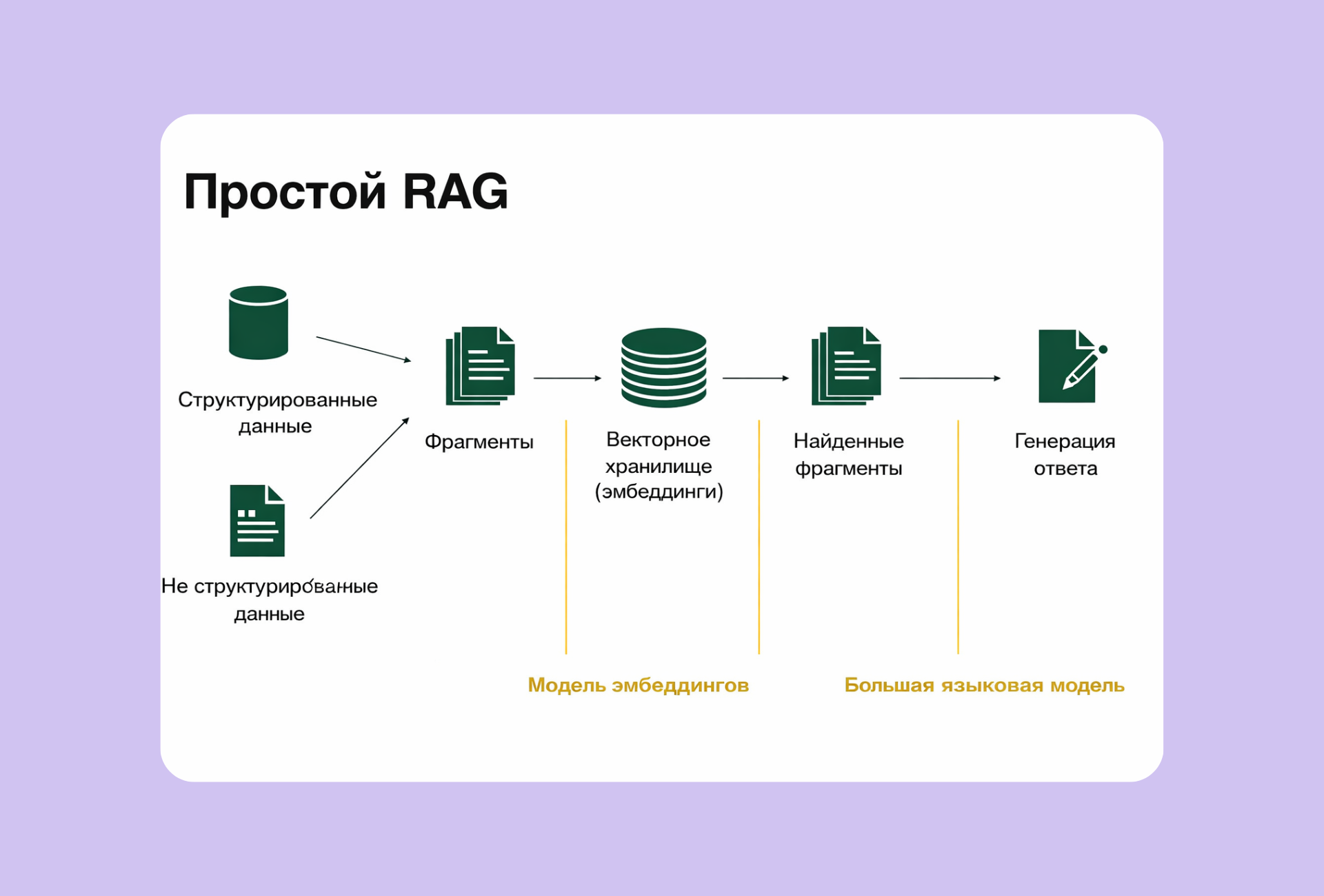 RAG (Retrieval-Augmented Generation) работает в четыре шага: пользователь задает вопрос, система ищет похожие документы в базе, передает их нейросети, та формирует ответ. Не из головы, а на основе реальных данных.