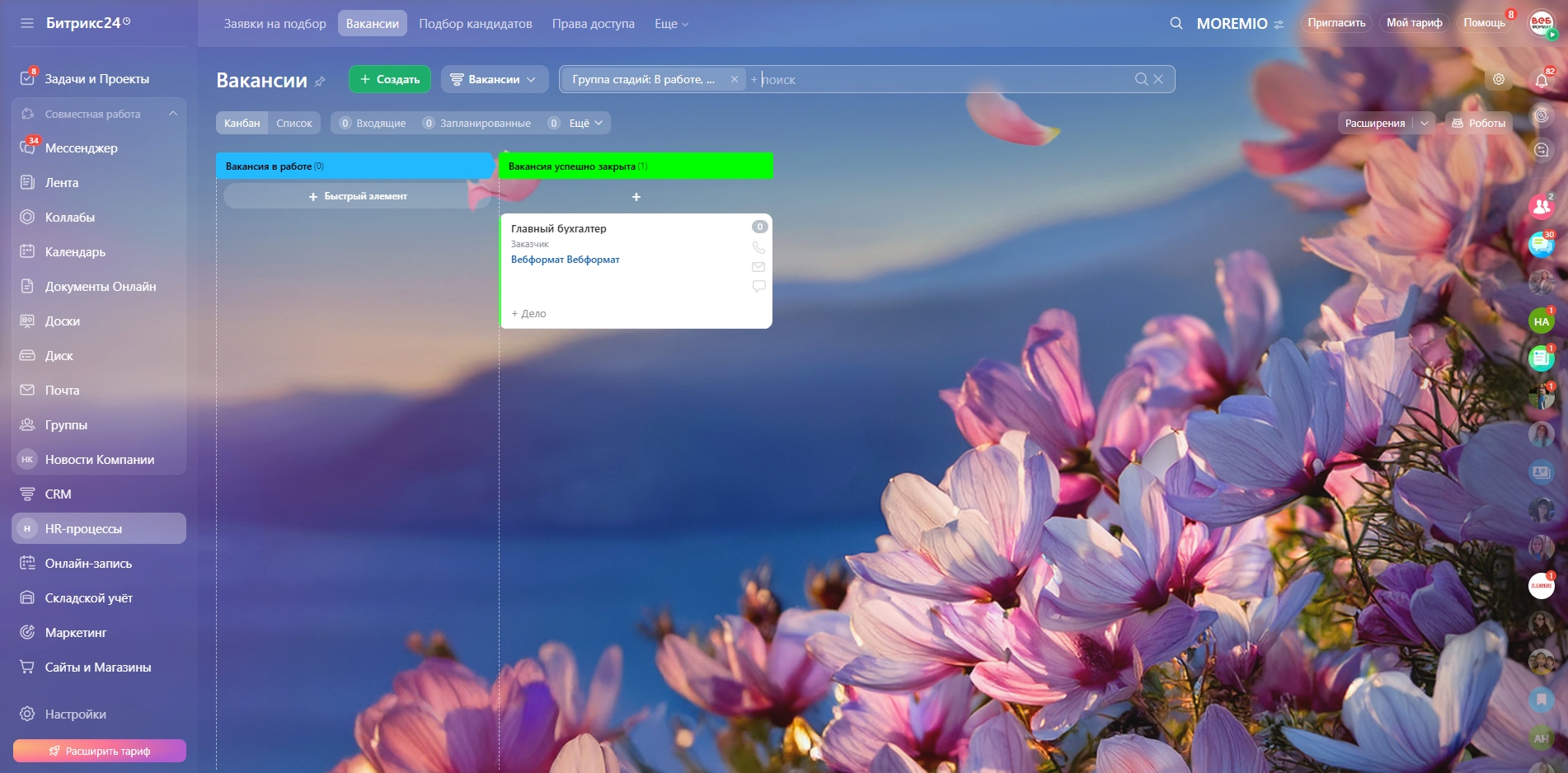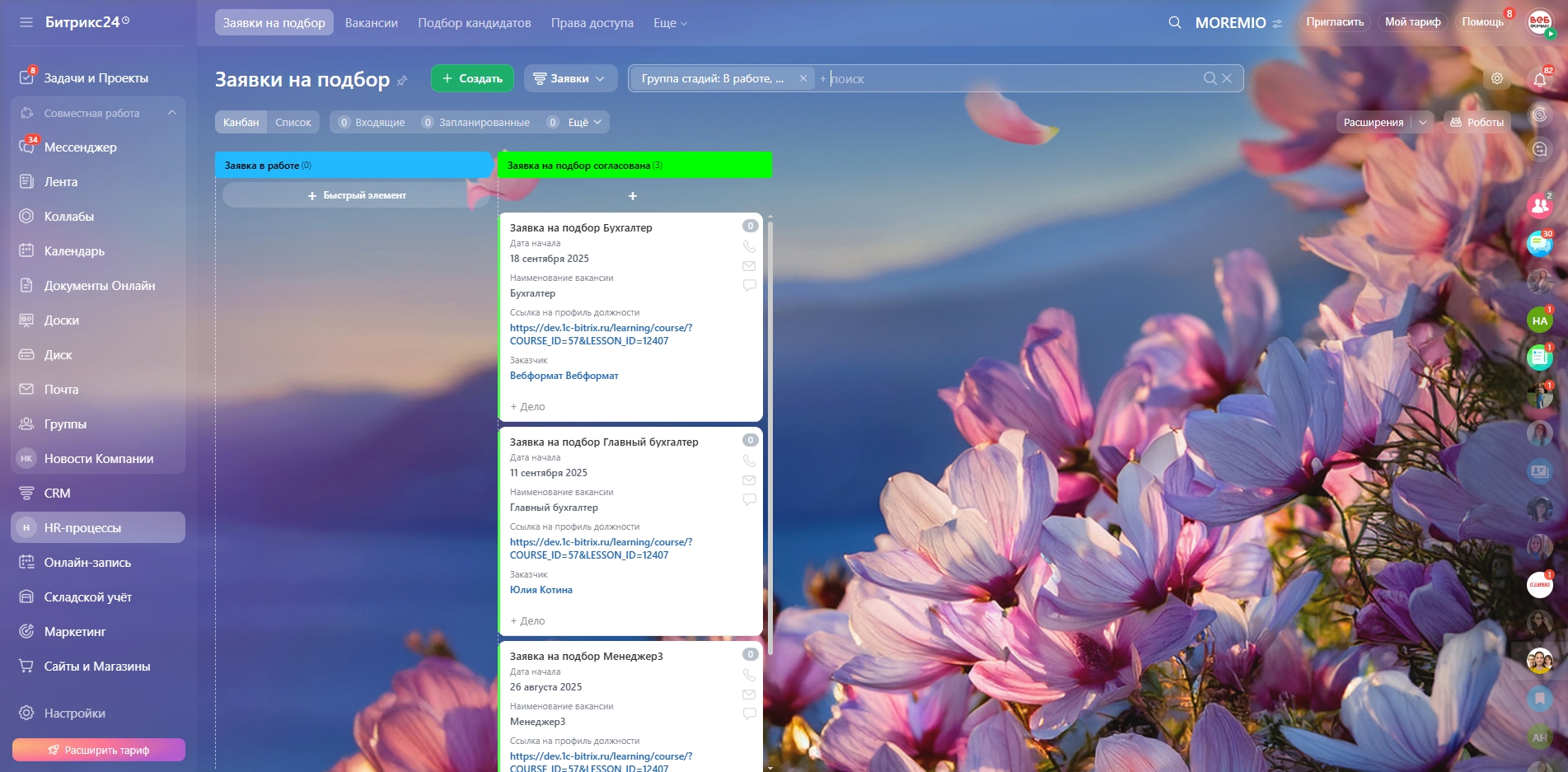 Систематизация и автоматизация HR‑процессов в Битрикс24 для «Moremio»