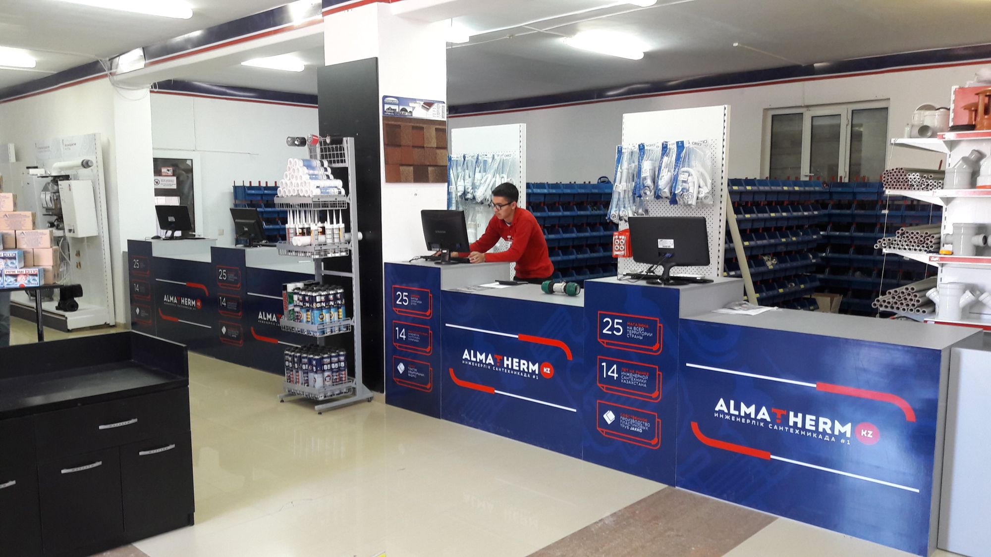 Сеть магазинов «ALMATHERM» на сегодняшний день является крупнейшей сетью в сфере инженерной сантехники. В 22 городах Казахстана, России и Кыргызстана имеется 39 фирменных магазина «Almatherm».
