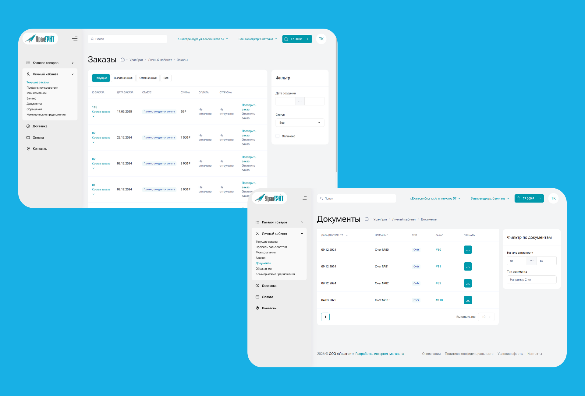 - Пользователи получили удобный доступ к личному кабинету с историей заказов, документам и информации о персональном менеджере.